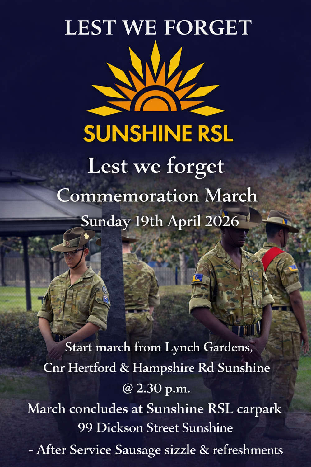 Situated 10kms west of Melbourne CBD, the Sunshine RSL is a friendly and vibrant club, offering wonderful facilities and hospitality.